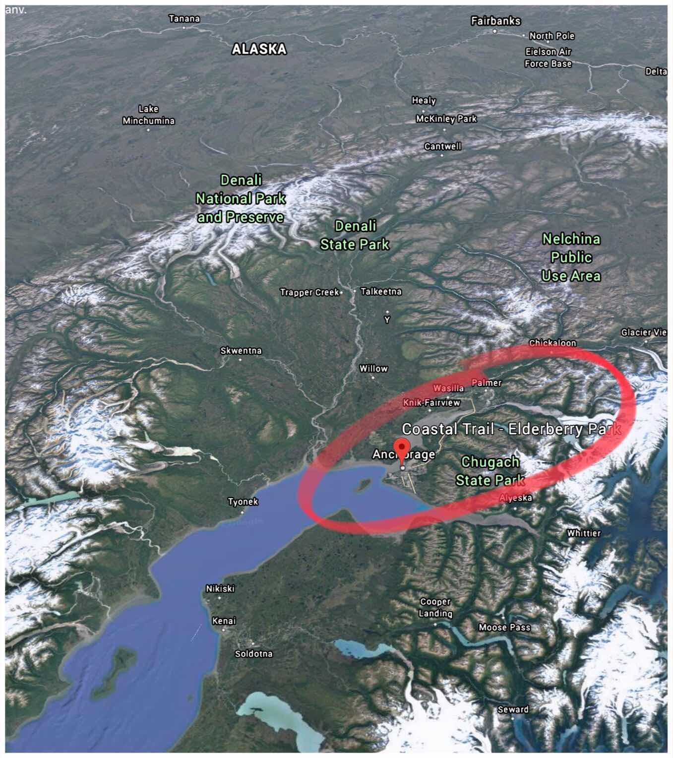 Cette ville, la plus grande de l’Alaska avec ses 291 000 habitants, est perchée sur une péninsule surplombant le Golfe de Cook. C’est une plaque tournante de la région en matière de tourisme. Bref, c’est l’une des villes la plus septentrionales du globe, elle offre à la fois une vie citadine et de grands espaces. Nous avons donc opté pour ses grands espaces...