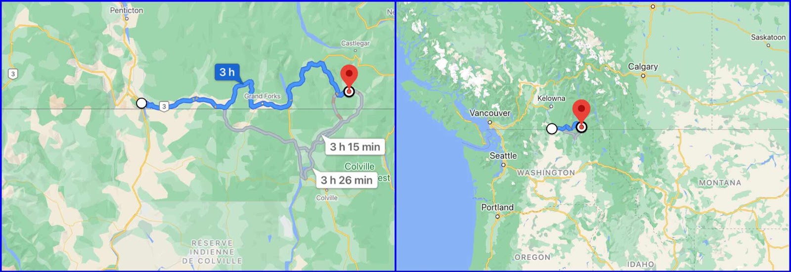 Nous ne savons pas au juste où nous nous rendrons. On pousse à l’est en longeant la frontière des USA. Notre objectif demeurant le même, atteindre le Watertown National Park demain. Nous quittons Ososyoos en empruntant une route en lacet qui nous permet de prendre de l’altitude et d’obtenir une vue imprenable sur la vallée, la ville et son grand lac.