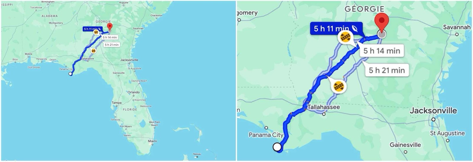 Le GPS nous indique 5h11 min de trajet mais nous savons qu’il nous en faudra beaucoup plus.